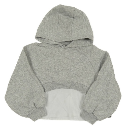 Šedá melírovaná crop mikina s bílým všitým topem a kapucí Next