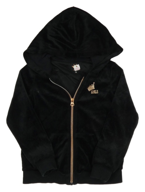 Černá sametová propínací mikina s potiskem a kapucí