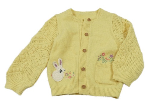 Žlutý propínací svetr s králíčkem a květy Nutmeg