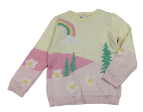 Smetanovo-růžový lehký svetr s květy a stromky Primark
