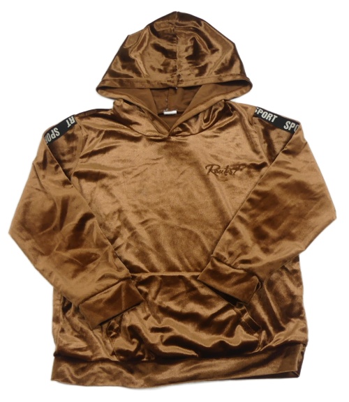 Hnědá sametová mikina s nápisy a kapucí Shein