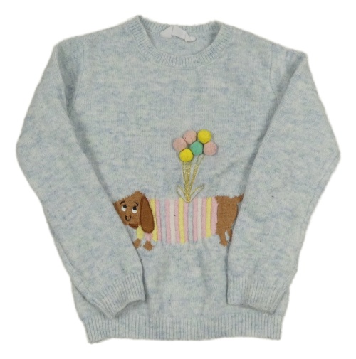 Světlemodro-zeleno-bílý svetr s pejskem Primark