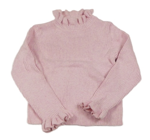 Světlerůžový melírovaný žebrovaný svetrový crop rolák s volánky Matalan
