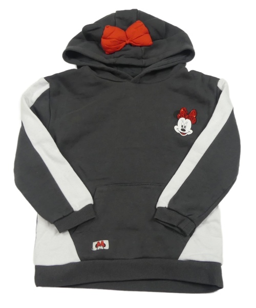 Tmavošedo-bílá mikina s Minnie s flitry a kapsou a kapucí s mašlí PRIMARK