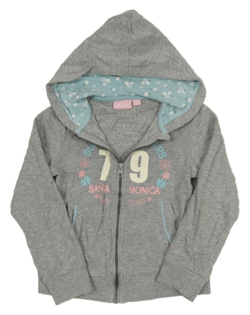 Šedá melírovaná propínací mikina s číslem a nápisy a květy a kapucí alive