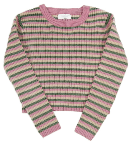 Růžovo-zelený žinylkový pruhovaný crop svetr Primark