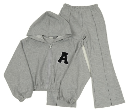 2set - Šedá crop propínací mikina s kapucí + zvonové teplákové kalhoty Shein