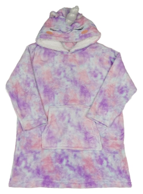 Barevná vzorovaná chlupatá oversize mikina s kapucí - jednorožec