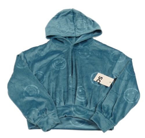 Nové- Petrolejová plyšová crop mikina se smajlíky a kapucí