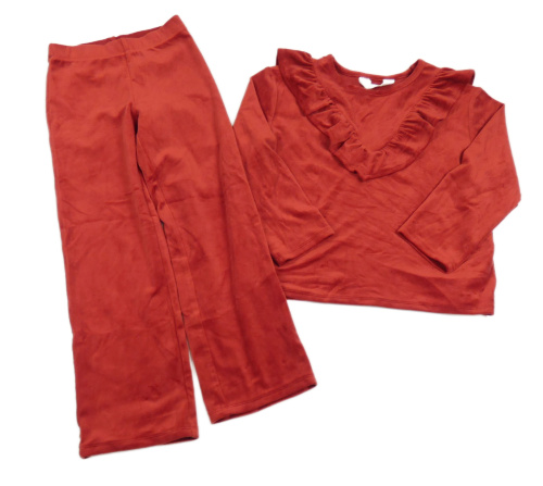 2Set - Červená plyšová mikina s volánkem + široké kalhoty H&M