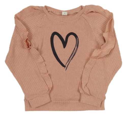 Růžová žebrovaná úpletová mikina se srdcem a volánky Shein