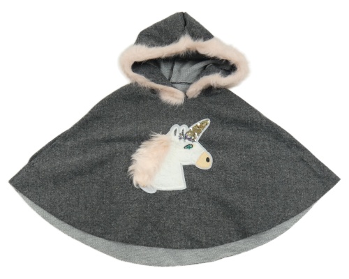 Šedé pončo s jednorožcem a kapucí