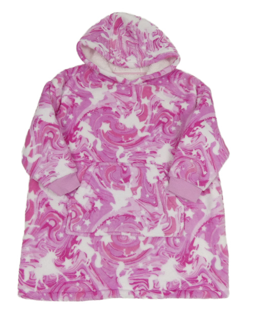 Růžovo-bílá vzorovaná plyšová oversize mikina s jednorožci a kapucí Dunnes Stores