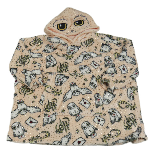 Lososová chlupatá oversize mikina s Hedvikou a kapucí - Harry Potter