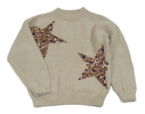 Béžový chlupatý svetr s hvězdami z flitrů F&F