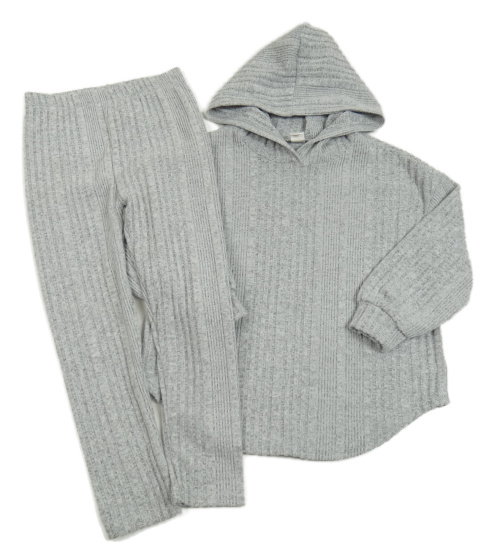 2set -Šedá žebrovaná úpletová melírovaná mikina s kapucí + legíny Shein