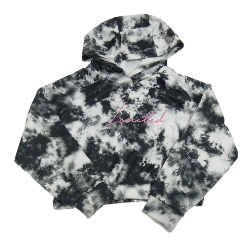 Černo-šedo-bílá batikovaná crop mikina s nápisy a kapucí PEP&CO