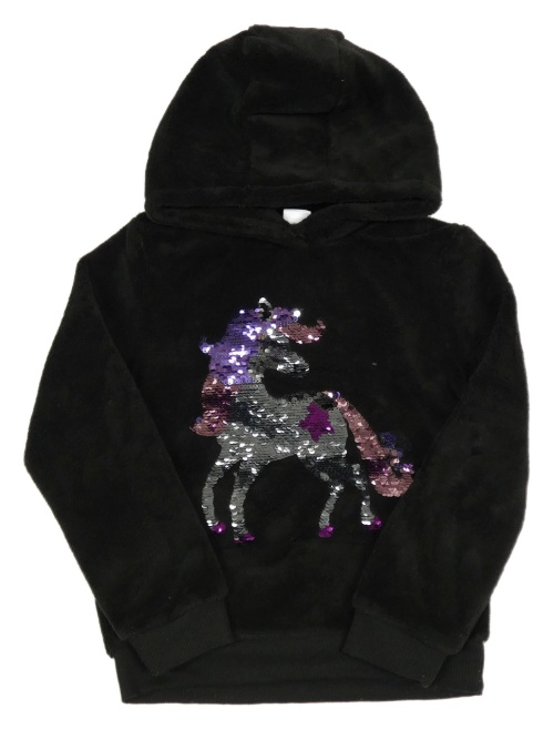 Černá plyšová mikina s jednorožcem z flitrů a kapucí Kiki&Koko