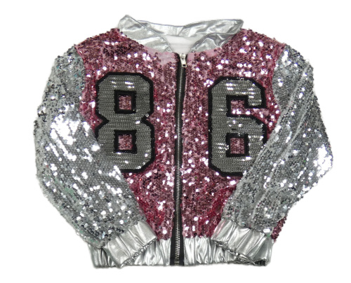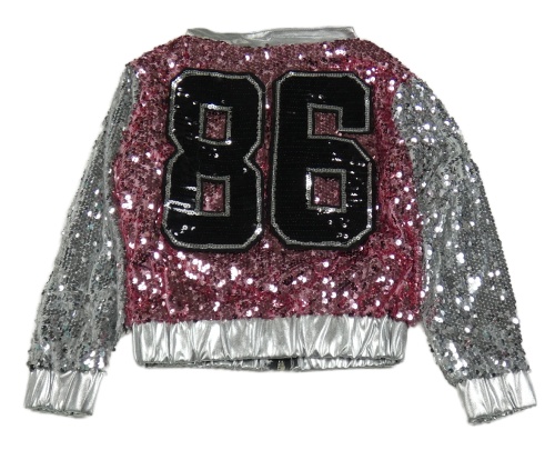 Růžovo-stříbrná flitrová propínací podšitá mikina s číslem