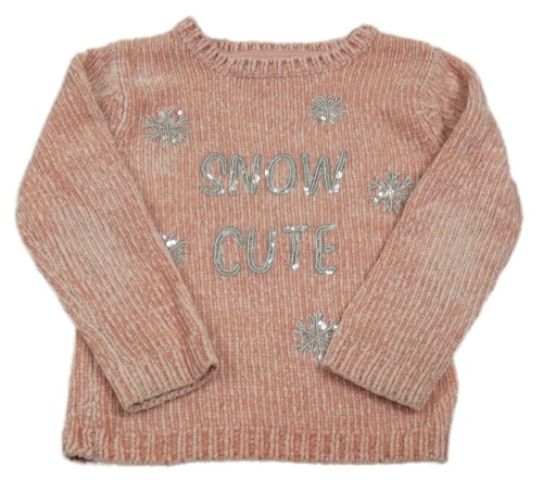 Růžový žinylkový svetr s vločkami a nápisem z flitrů Primark