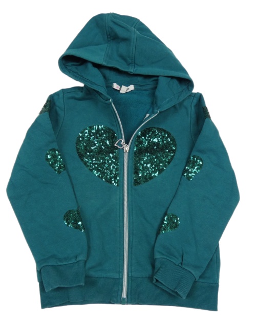 Smaragdová propínací mikina s flitry a kapucí