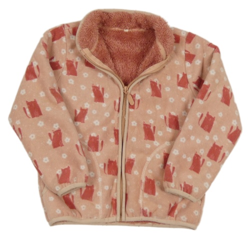 Starorůžová květovaná fleecová zateplená propínací mikina s kočkami