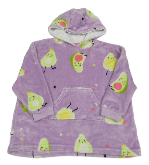 Lila chlupatá domácí oversize mikina s avokády a kapucí Primark