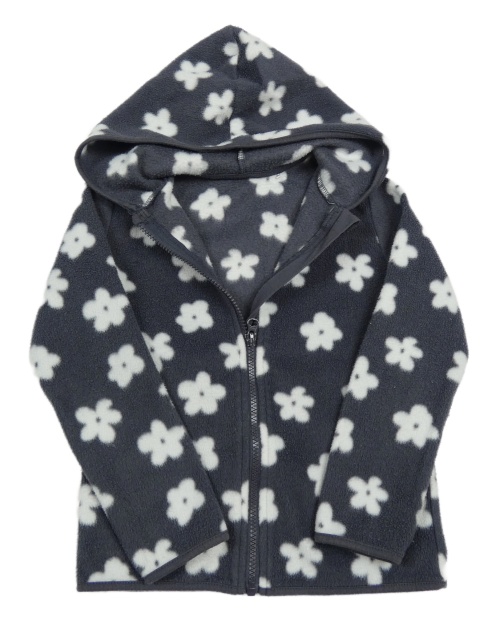 Tmavošedá fleecová propínací mikina s kytičkami a kapucí George