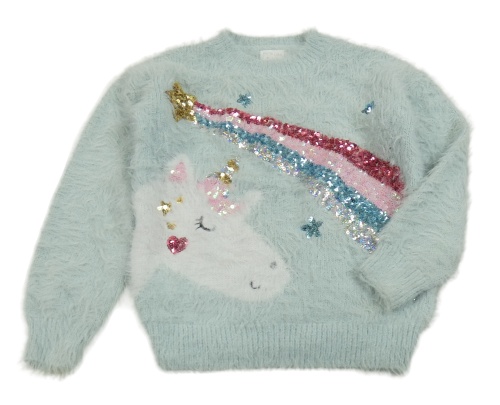 Světlemodrý chlupatý svetr s králíkem a kometou z flitrů F&F