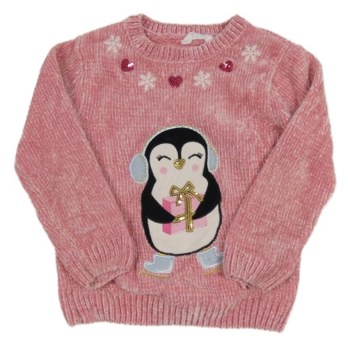 Starorůžový žinylkový svetr s tučňákem s flitry Primark