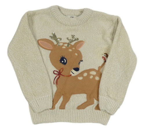Béžový žinylkový svetr se srnkou s flitry C&A