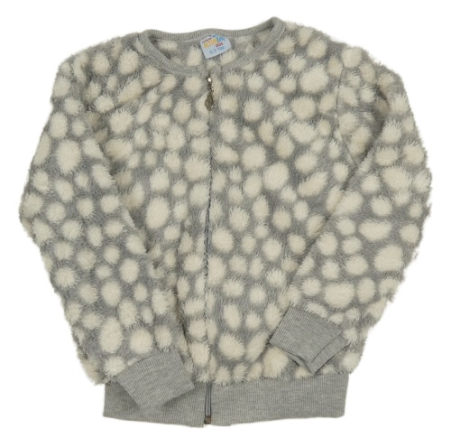 Šedo-bílá puntíkatá chlupatá propínací mikina