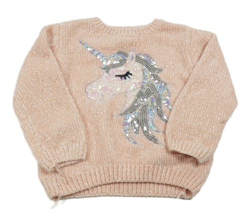 Růžový žinylkový svetr s jednorožcem z flitrů Primark
