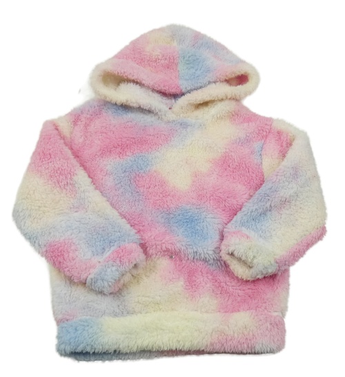 Růžovo-světlemodro-smetanová batikovaná chlupatá mikina s kapucí Shein