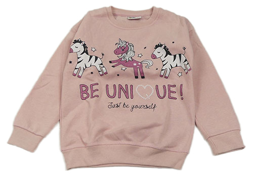 Světlerůžová mikina se zebrami a jednorožcem INFINITY KIDS