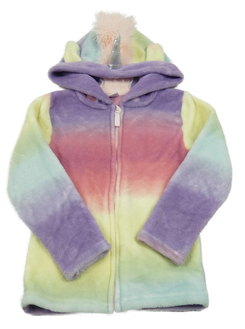 Barevná propínací plyšová mikina s kapucí - jednorožec