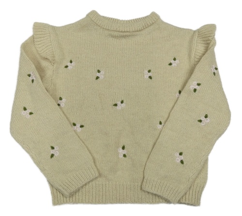 Světlebéžový svetr s kytičkami a volánky BLUE QUEEN
