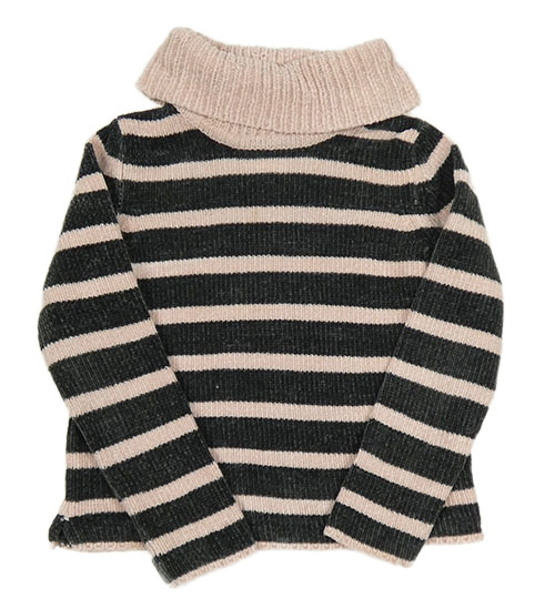 Růžovo-tmavošedý pruhovaný svetr s rolákem C&A