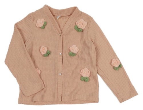 Starorůžová vzorovaná propínací úpletová mikina s květinami