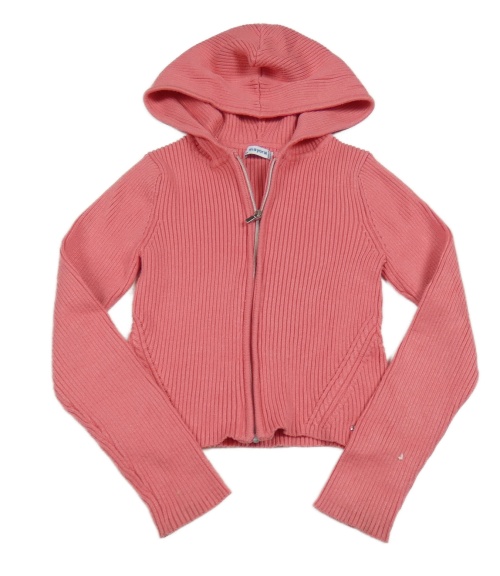 Korálový žebrovaný propínací crop svetr s kapucí mayoral
