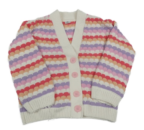 Bílo-barevný vzorovaný žinylkový propínací svetr