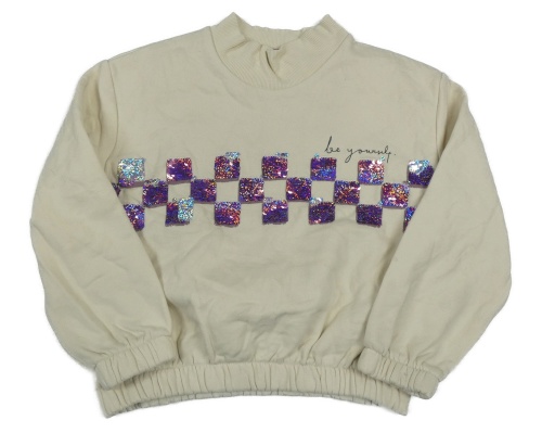 Smetanová crop mikina s flitry Nutmeg
