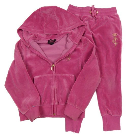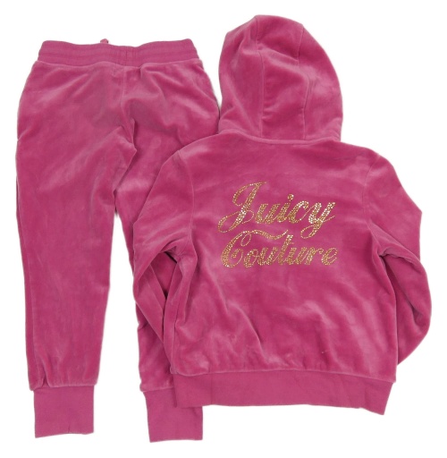 2set - Růžová plyšová propínací mikina s nápisem z kamínků a kapucí + růžové plyšové tepláky Juicy Couture