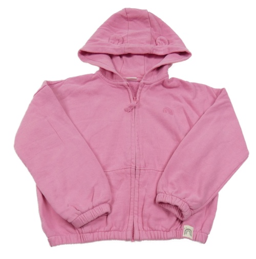 Růžová propínací oversize crop mikina s duhou a kapucí s oušky Next