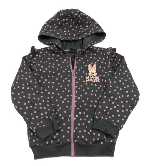 Antracitovo-růžová puntíkatá propínací mikina s Minnie a kapucí Primark