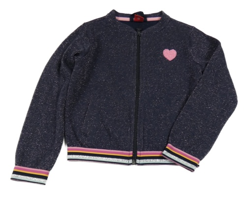 Tmavomodro-růžová třpytivá propínací mikina se srdíčkem S. Oliver