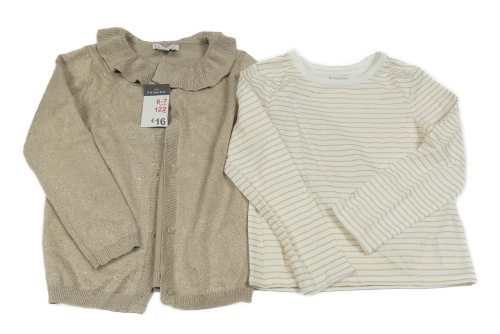 • Nové - 2set - Světlehnědý třpytivý propínací svetr s límečkem + bílo-zlaté pruhované triko Primark