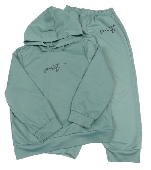 2Set - Olivovošedá mikina s nápisem a kapucí + tepláky SHEIN