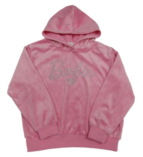 Růžová plyšová mikina s nápisem z kamínků a kapucí - Barbie H&M