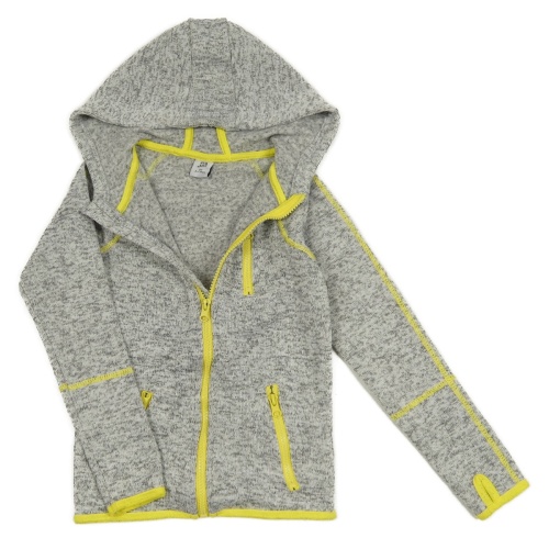 • Šedá melírovaná pletená thermo propínací mikina se žlutými prvky a kapucí Kiki&Koko